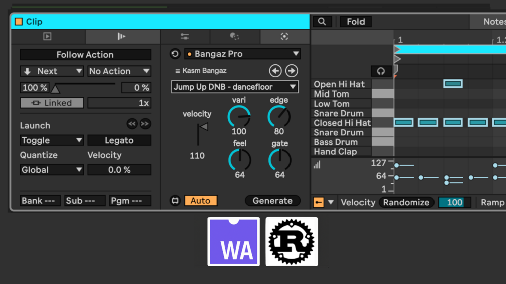 Short soundcloud example output of two Ableton Drum racks with Bangaz playing them synched together:https://soundcloud.com/kevleyski/bangaz-pro