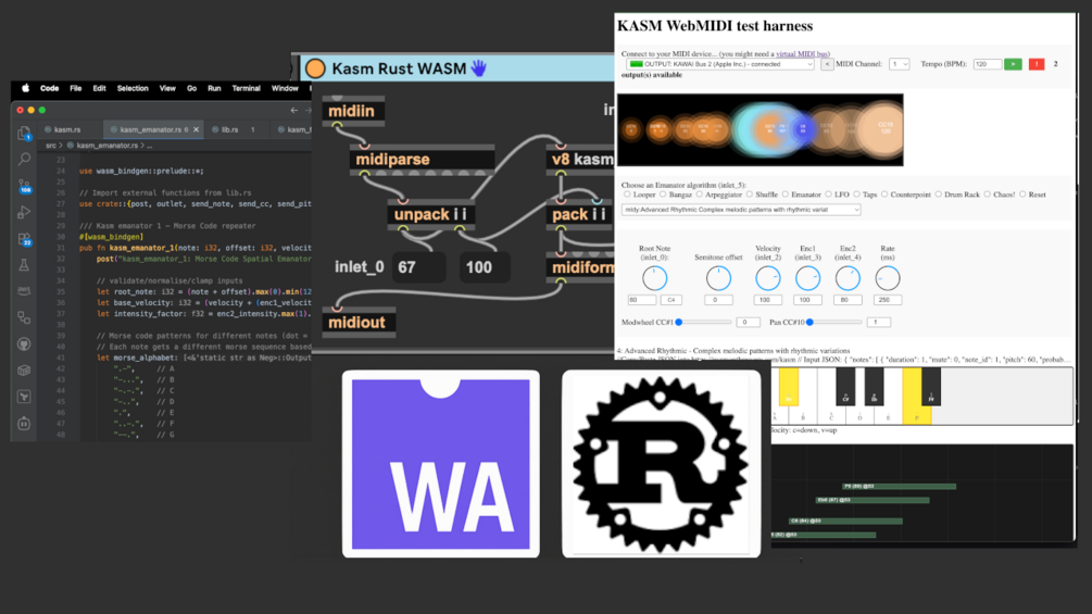 - Efficient MIDI manipulation using Rust in Ableton Live 12.2 with Max4Live through WebAssembly in the new V8 JavaScript engine.